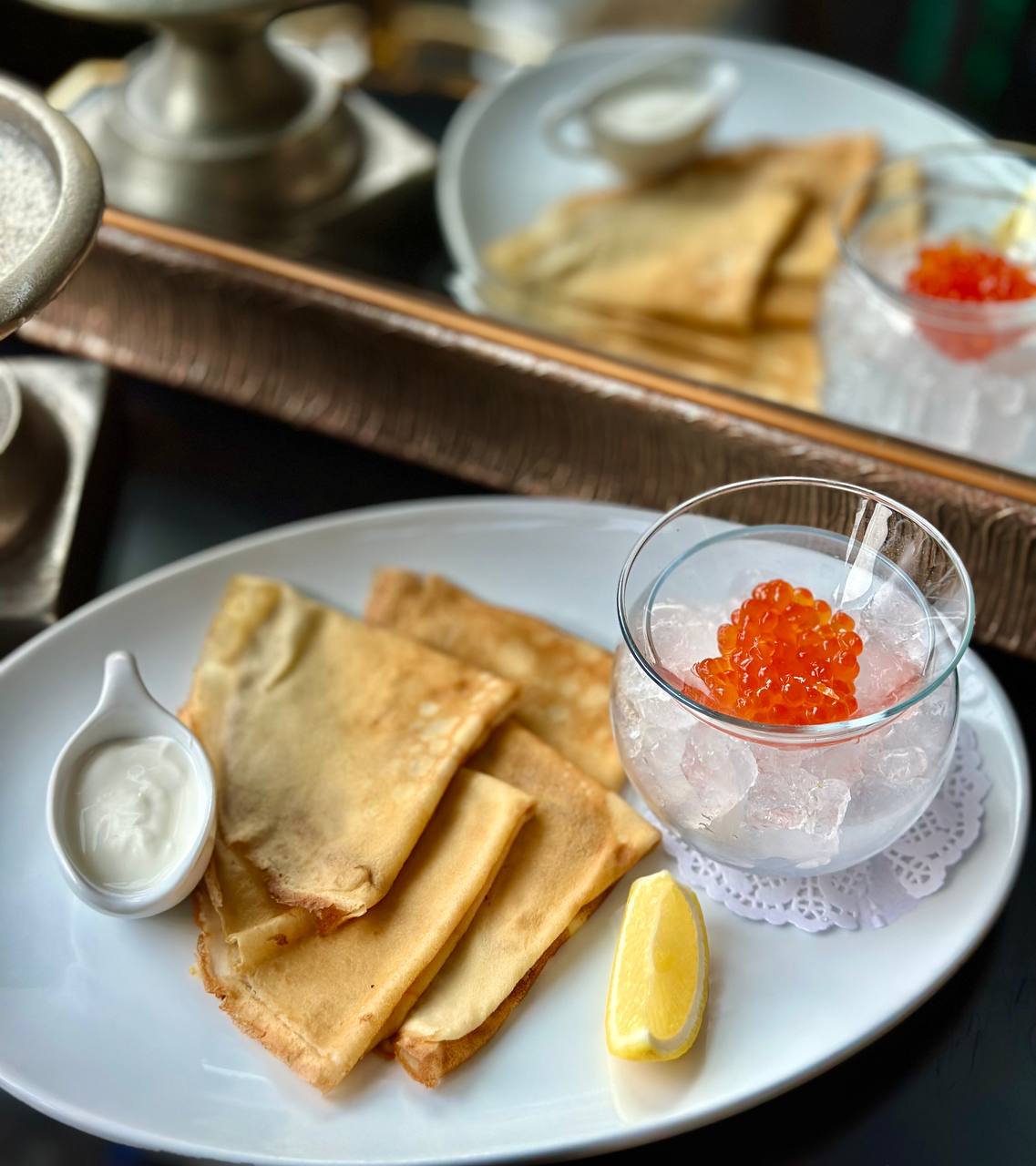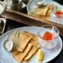 Blinis with salmon caviar and sour cream