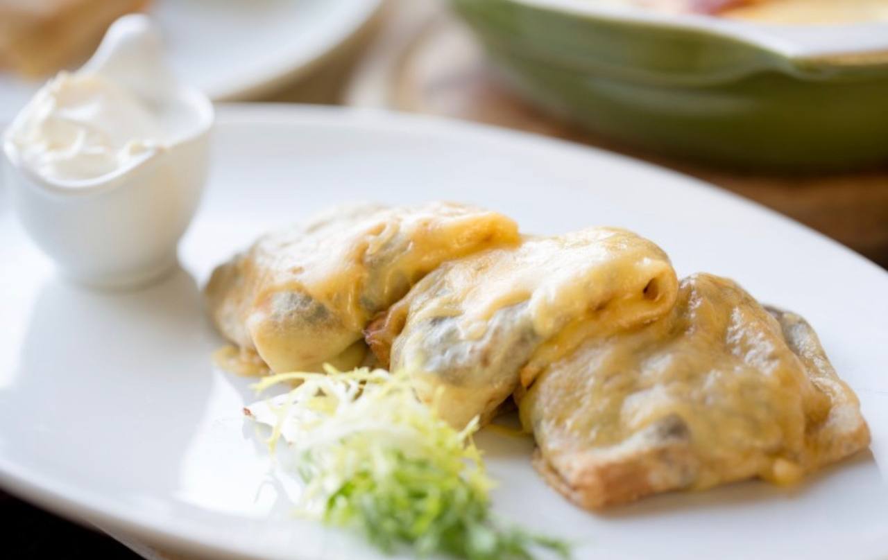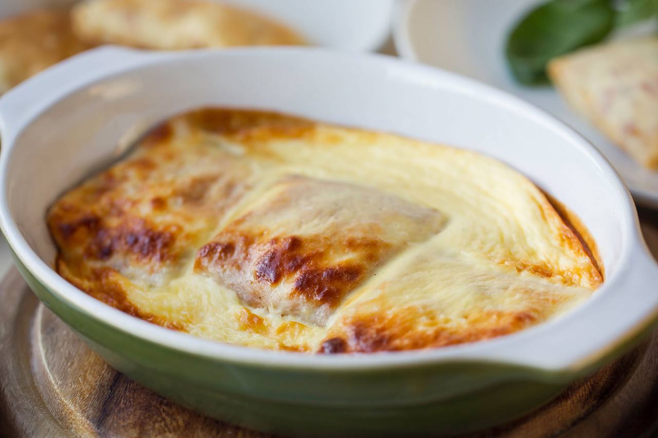 Spinach crepe with mortadella, truffle and creamy cheese