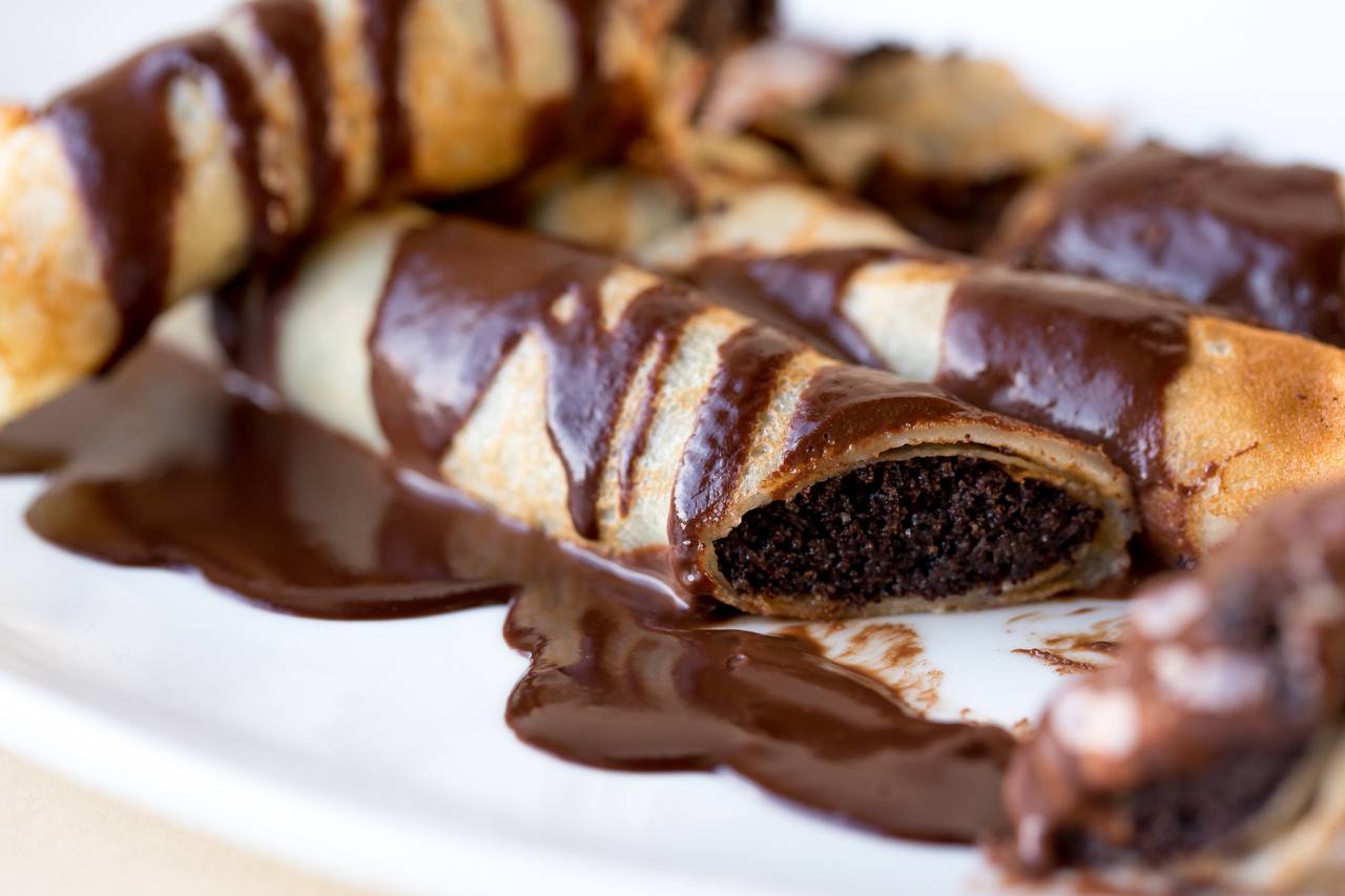 Blinis filled with chocolate and poppy seeds